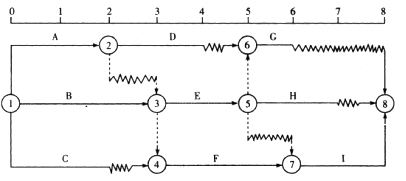 某工程双代号时标网络计划如下图所示(时间单位:周),工作A的总时差为( )周。(2012)