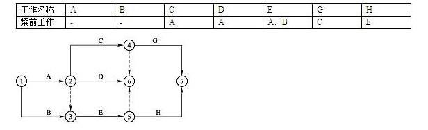 根据表中给定的逻辑关系所绘制的分部工程双代号网络计划如下图所示,其作图错误的地方在于( )。