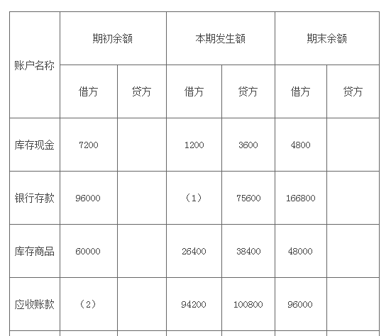 总分类账户本期发生额和余额对照表(试算平衡表)