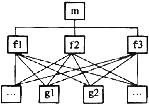 下图所示的职能组织结构中,m、f1、f2、f3、g1、g2等分别代表不同的工作部门或主管人员。这个组织结构表明()。