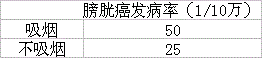 比较男性吸烟和不吸烟与膀胱癌关系的特异危险度为