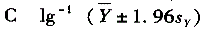 若正常成人的血铅含量近似服从对数正态分布。拟用300名正常人血铅值确定95%参考值范围,最好采用(其中γ =IgX)
