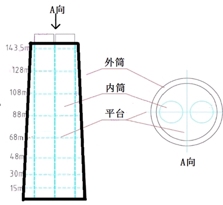 (2018年真题)A公司承担某炼化项目的硫磺回收装置施工总承包任务,其中烟气脱硫包含的烟囱由外筒和内筒组成,外筒为钢筋混凝土筒壁,高度为145m,内筒为等直径自立式双管钢筒、高150m,内筒于外筒之间有8层钢结构平台,每层之间由钢梯连接,钢结构平台安装标高如下图所示。