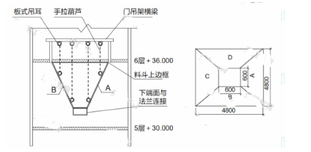 (2020年真题)某生物新材料项目由A公司总承包,A公司项目部经理在策划组织机构时,项目部根据项目的大小和具体情况配备了项目部技术人员,满足了技术管理要求。项目中的料仓盛装的浆糊流体介质温约42°℃,料仓外壁保温材料为半硬质岩棉材料。料仓由ABCD四块不锈钢壁板组焊而成。尺寸和安装位置如图3所示。门吊架横梁上挂设4只手拉葫芦,通过卸扣、钢丝绳吊索与料仓壁板上吊耳(材料为Q235)连接成吊装系统。料仓的吊装顺序为:A、C→B、D;料仓四块不锈钢焊接方法是焊条电弧焊。设计要求:料仓正方形出料口连接法兰安装水平允许偏差≤1mm,对角线允许偏差≤2mm,中心位置允许偏差≤1.5mm。料仓工程质量检查时,质量员提出吊耳与料仓壁板为异种钢焊接,违反"禁止不锈钢与碳素钢接触”的规定。项目部对料仓临时吊耳进行了标识和记录,根据材质和严重程度编制并提交了质量问题调查报告,及时返修后,质量验收合格。