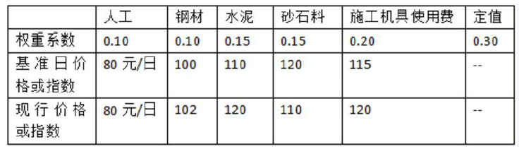 某施工合同约定采用价格指数及价格调整公式调整价格差额,调价因素及有关数据见下表。某月完成进度款为1500 万元,则该月应当支付给承包人的价格调整金额为( )万元。
