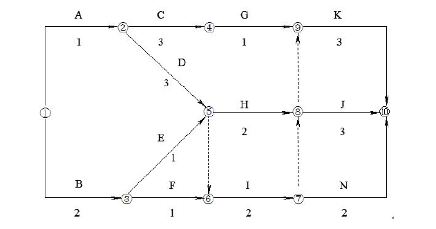 某分部工程双代号网络计划如下图所示,节点中下方数字为该工作的持续时间(单位:天),其关键线路有( )条。