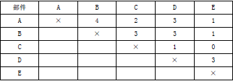 (2013年考题)采用0-4评分法确定产品各部件功能重要性系数时,各部件功能得分见下表,则部件A的功能重要性系数是()。