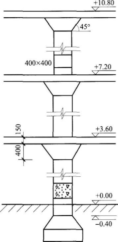 有一幢3层楼的无梁楼盖(如图),则一根柱(三层)的混凝土工程量为( )m3。