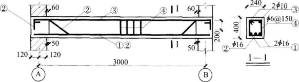 有一钢筋混凝土简支梁,结构如图,则一根②号筋的长度为( )mm。