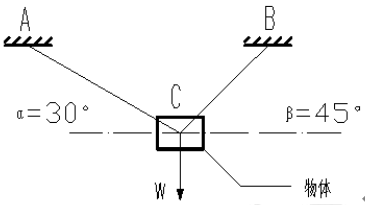 下图物体重量为W,通过两根细绳AC和BC悬挂,各自受力分别为FA和FB下面说法正确的是( )。