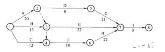 某水利水电施工承包商与业主签订了一份堤防工程施工合同,合同约定工期为 68 天,承包商工期每提前 1天获奖励 2000 元,每拖后 1 天支付违约金 3000 元。承包商提交的施工网络进度计划如下图所示,该计划得到业主代表的认可。
