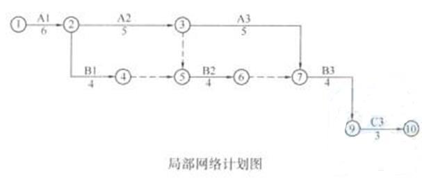 某项目部针对一个施工项目编制网络计划图,下图是计划图的一部分: