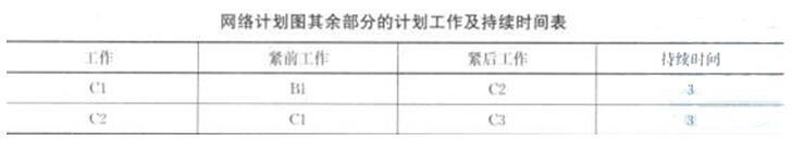 某项目部针对一个施工项目编制网络计划图,下图是计划图的一部分:该网络计划图其余部分计划工作及持续时间见下表: