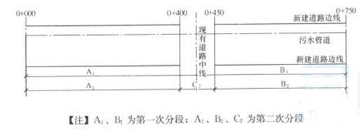 项目部承接的新建道路下有一条长750m、直径1000mm的混凝土污水管线,埋深为地面以下6m。管道在0+400至0+450处穿越现有道路。场地地质条件良好,地下水位于地面以下8m,设计采用明挖开槽施工。项目部编制的施工方案以现有道路中线(按半幅断路疏导交通)为界将工程划分A1、B1两段施工(见图),并编制了施工进度计划,总工期为70天。其中,A1段(425m)工期40天,B1段(325m)工期30天,A1段首先具备开工条件。