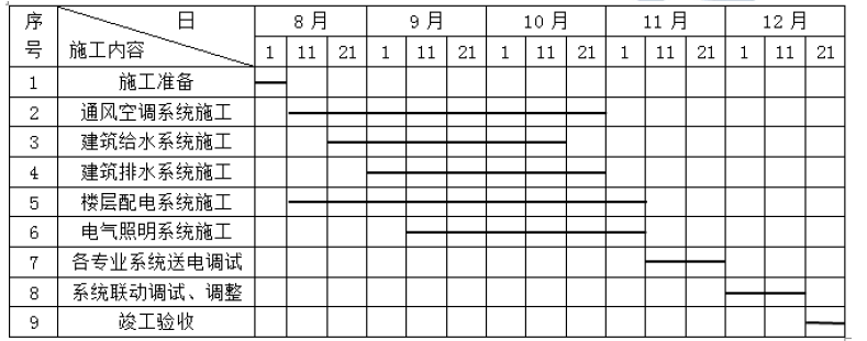 表3通风空调、给排水和建筑电气工程的施工进度计划