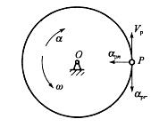 半径r的圆盘以其圆心O为轴转动,角速度ω,角加速度为a。盘缘上点P的速度VP,切向加速度apr与法向加速度apn的方向如图,它们的大小分别为: