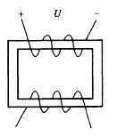 图示电路中,磁性材料上绕有两个导电线圈,若上方线圈加的是100V的直流电压,则: