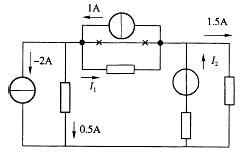 图示电路中,电流I1和电流I2分别为:A. 2. 5A 和 1. 5A