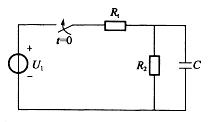 图示电路中,电容的初始能量为0,高级开关S在t=0时刻闭合,此后电路将发生过渡过程,那么,决定该过渡过程的时间常数τ为:A.τ=(R1+R2)
