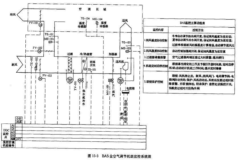 一空调机组承担某建筑物特定区域的空气温、湿度调节,图15-3为其监控系统图。