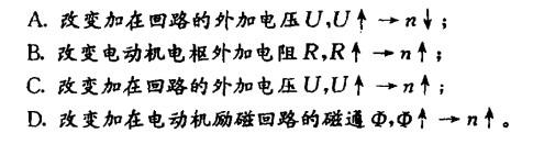 以下关于改变直流电动机运行参数对应转速n的变化结果的叙述中正确的是( ).![]()