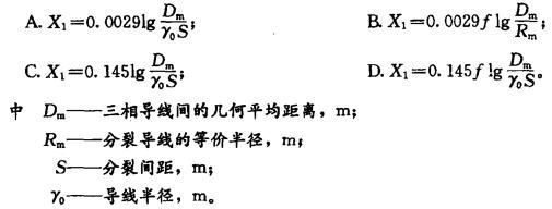 计算单回送电线路正多边形n分裂导线的正序电抗(Ω/km)公式是()。![]()