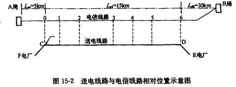 送电线路与电信线路相对位置示意图如图15-2(电信线路系长途中继线、Ecd=1030V),请按电信线路两端绝缘计算对地电压。