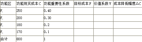 某企业对产品功能进行评价,预降低成本200万元,部分功能评价值计算如下表所示(单位:万元),下列有关该价值工程的表述,正确的有( )。
