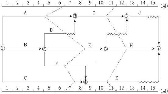 E第11周末检查时,工作K拖后1周,不影响总工期