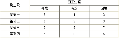 某建筑物基础工程的施工过程、施工段划分和流水节拍(天)见下表。如果组织非节奏流水施工,则基础二浇筑完工时间为第( )天。
