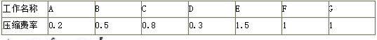 对下面双代号网络图进行工期优化,当各工作压缩费率如下表所示时,欲压缩总工期1天,应当选择( )进行压缩。