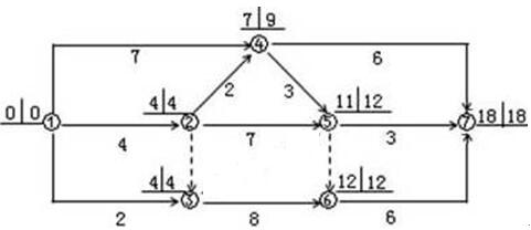 某工程双代号网络计划中各个节点的最早时间和最迟时间如下图所示,图中表明( )。