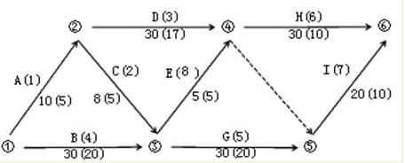 已知某网络计划如下图所示,箭杆上方括号外为工作名称,括号内为优先压缩顺序。箭杆下方括号外为正常持续时间,括号内为最短持续时间,若对其工期进行压缩,应首先压缩工作( )。