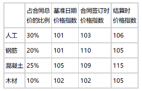 某工程随工合同约定根据价格调整公式调整合同价,已知不调值部分占合同价的比例为15%,可参与调值部分的费用类型、占合同总价的比例和相关价格指数见下表,若结算当月完成的合同额为1000万元,则调整后的合同金额为( )。