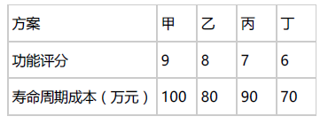 现有四个施工方案可供选择,其功能评分和寿命周期成本相关数据见下表,则根据价值工程原理应选择的最佳方案是( )。