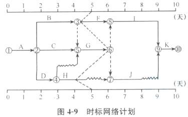 检查某工程的实际进度后,绘制的进度前锋线如图4-9所示,在原计划工期不变的情况下,H工作尚有总时差( )天。