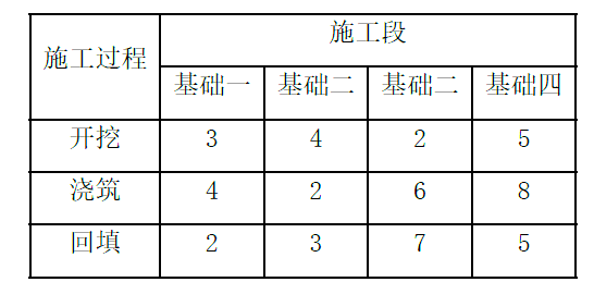 某建筑物基础工程的施工过程、施工段划分和流水节拍(天)见下表。如果组织非节奏流水施工,则基础二浇筑完工时间为第()天。