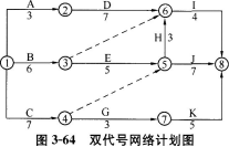 在图3-64所示的双代号网络计划中,关键线路有()。