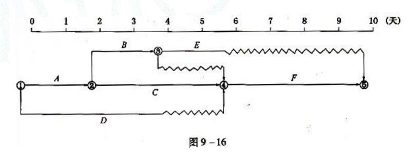 (2009年真题)某分部工程双代号时标网络计划如图 9-16 所示,则工作 B 的总时差和自由时差分别是( )