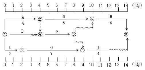 (2017年真题)某工程双代号时标网络计划如图所示,其中工作E的总时差和自由时差( )。
