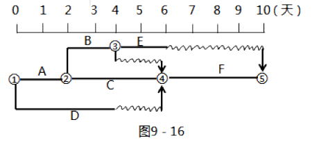 某分部工程双代号时标网络计划如图9-16 所示,则工作B 的总时差和自由时差分别是( )。