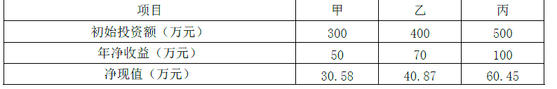 有甲、乙、丙三个独立项目,寿命期相同,初始投资额、年净收益、净现值见下表,己知行业财务基准收益率为10%,投资人的资金限制为1000 万元,用净现值法选择的项目是( )。