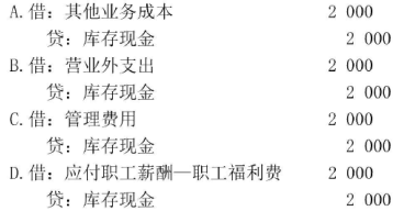 某企业以现金支付行政管理人员生活困难补助2000元,下列各项中,会计处理正确的是( )。