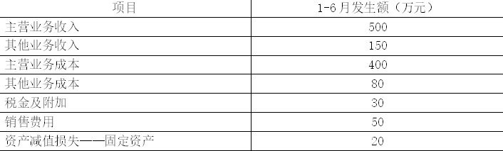 其他资料:甲公司2020年1-6月利润表项目如下表所示: