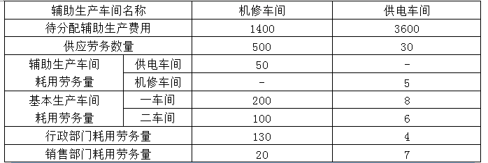某制造企业下设机修和供电两个辅助生产车间,采用交互分配法分配辅助生产费用。辅助生产车间的制造费用不通过“制造费用”科目核算。2020年3月份各辅助生产车间发生的费用及提供的产品和劳务数量见下表: