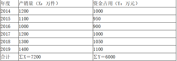 某企业2014年至2019年历年产销量和资金变化情况如表所示,数据已经整理,见下表。2020年预计销售量为1500万件