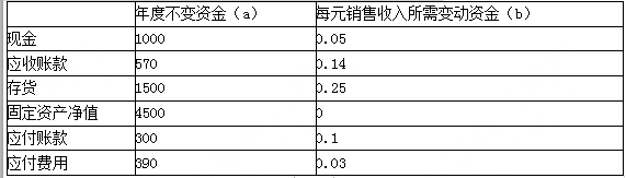 乙企业2020年的相关预测数据为:销售收入20000万元,新增留存收益100万元;各项与销售收入变化有关的资产负债表项目预测数据如下表所示:(单位:万元)
