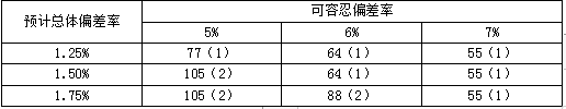 (5)假设A注册会计师确定的可接受的信赖过度风险为10%,可容忍偏差率为6%,预计总体偏差率为1.75%。可接受的信赖过度风险为10%的样本量表摘录如下(括号内是可接受的偏差数):