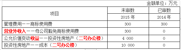 (2)甲公司每年向母公司支付商标使用费300万元,2015年母公司豁免了该项费用。