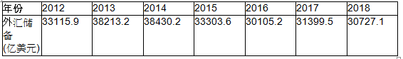 2012 -2018年期间我国国家外汇储备的时间序列如下: